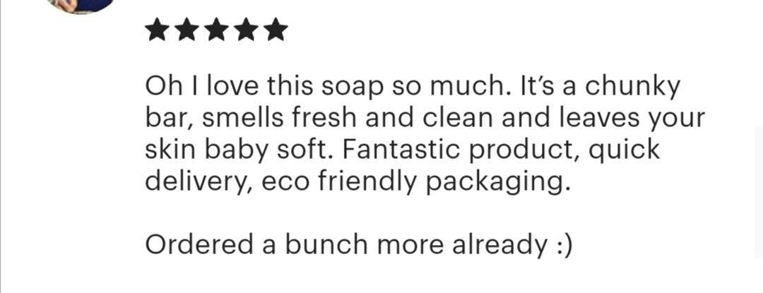 One bar of at least 115g, handmade, organic and vegan cold processed, traditionally made, castile soap. Palm oil free and ingredients sustainably sourced.
