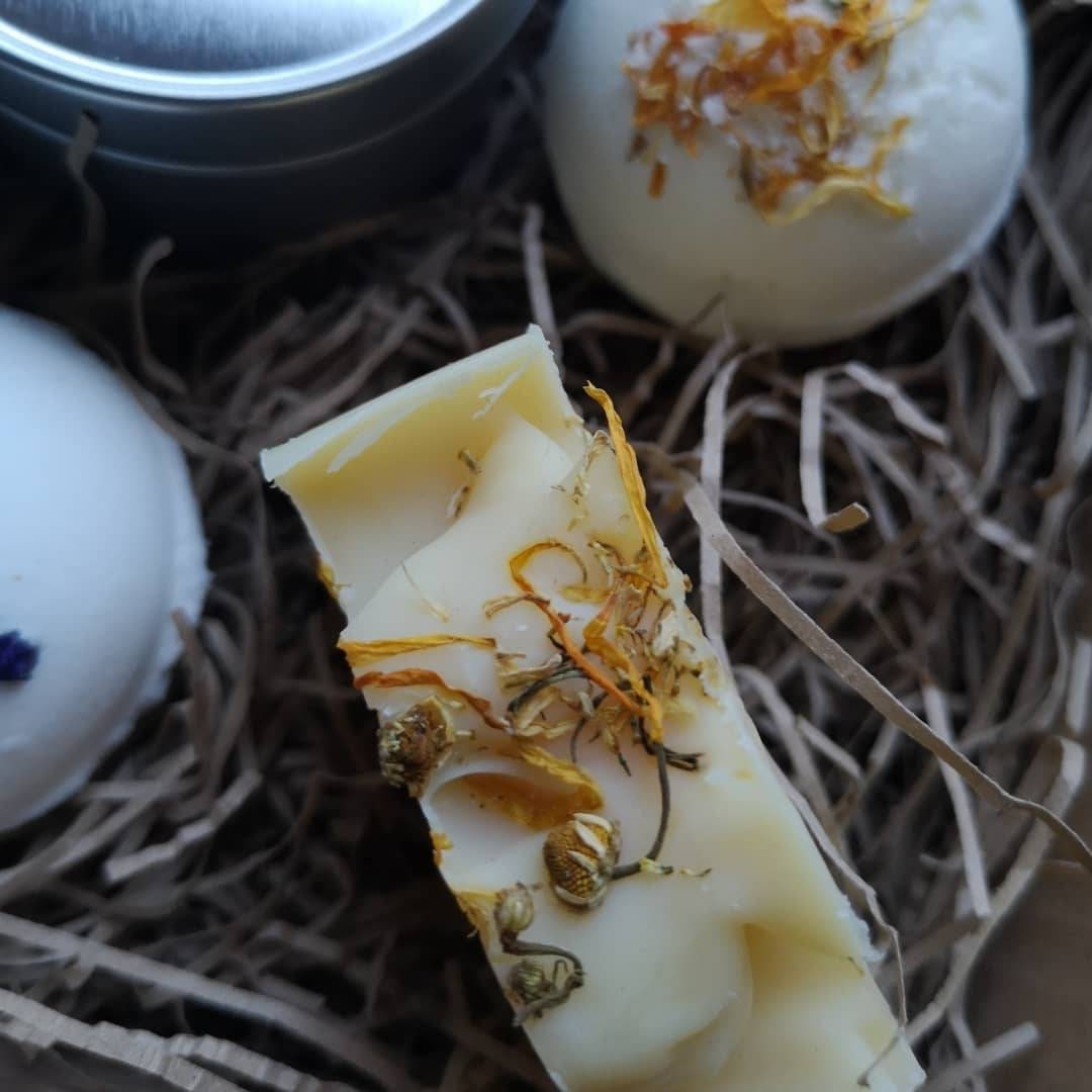 One 60g bar of my Lemongrass grapefruit and bergamot essential oil, original recipe body soap, topped with chamomile and calendula flower. Featuring cruelty free and fair trade coconut, shea, sunflower and olive. A beautiful lather and accompanying scent that will leave your skin cleansed and soft.
