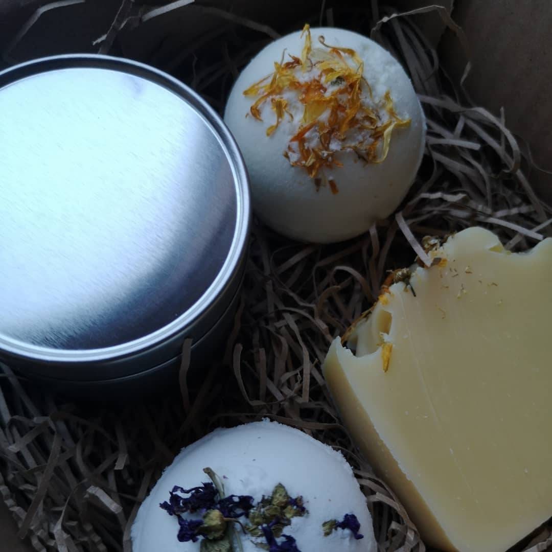 All packaging minimal, reused, recycled and home compostable. Each item inside is safely wrapped in eco kraft soy wax paper and held together with twine to make a low (environmental) impact but luxurious gift. Comes in a box that can be sealed, gift ready, or can be left open for you to check out or add to if necessary. I have put the option in the drop down menu.