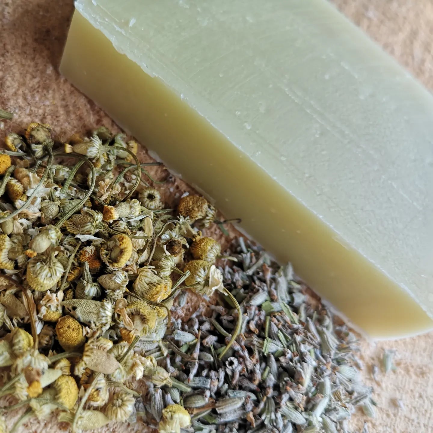 Lavender, black pepper and juniper berry, triple butter and hemp soap. With chamomile infused olive + oat. Organic handmade soap bar. 120ge