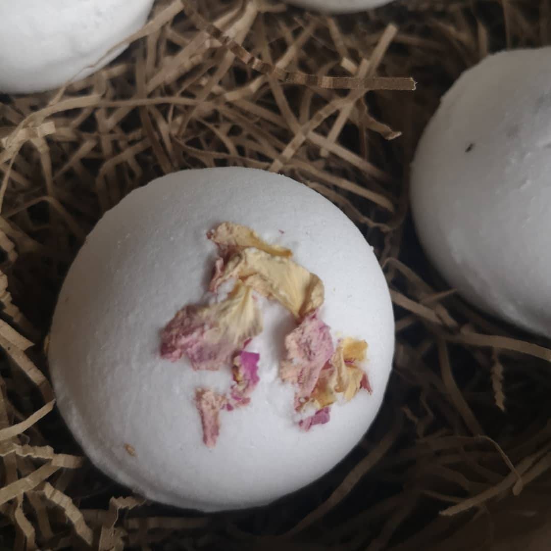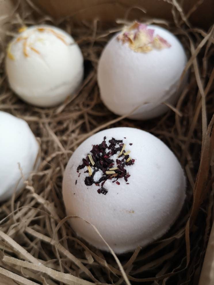 A set of four luxurious natural bath bombs made with organic essential oils and apricot kernel oil. Each at least 75 grams in weight. ( I have now added big bomb option to this listing, they're also available in another listing)